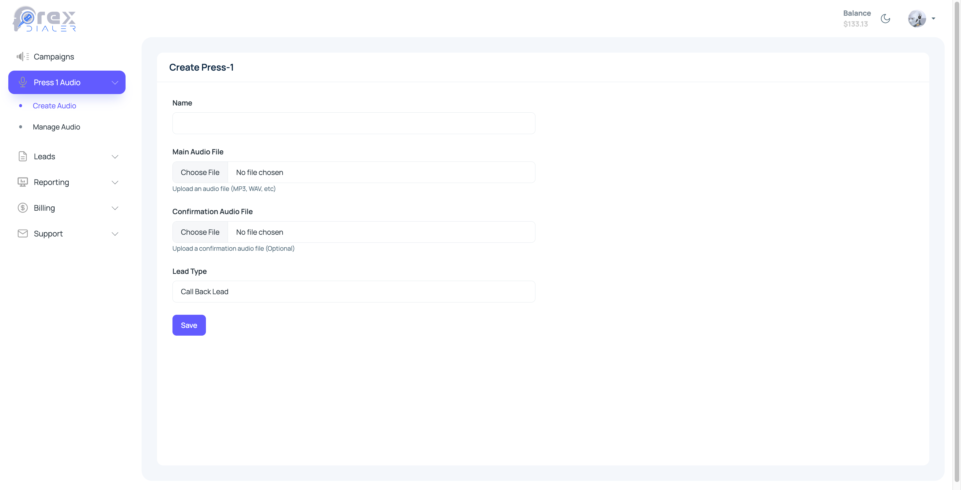 Create a custom audio recording in any language that will be played to your prospects.
